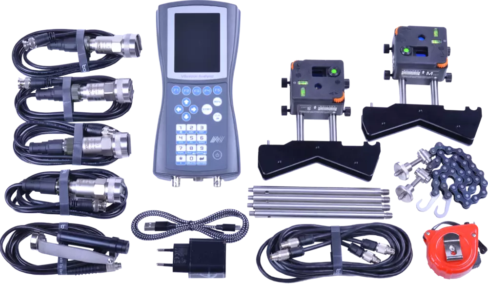 1х тахометр, ИК-термометр, зонд тестера подшипников, датчики лазерной центровки